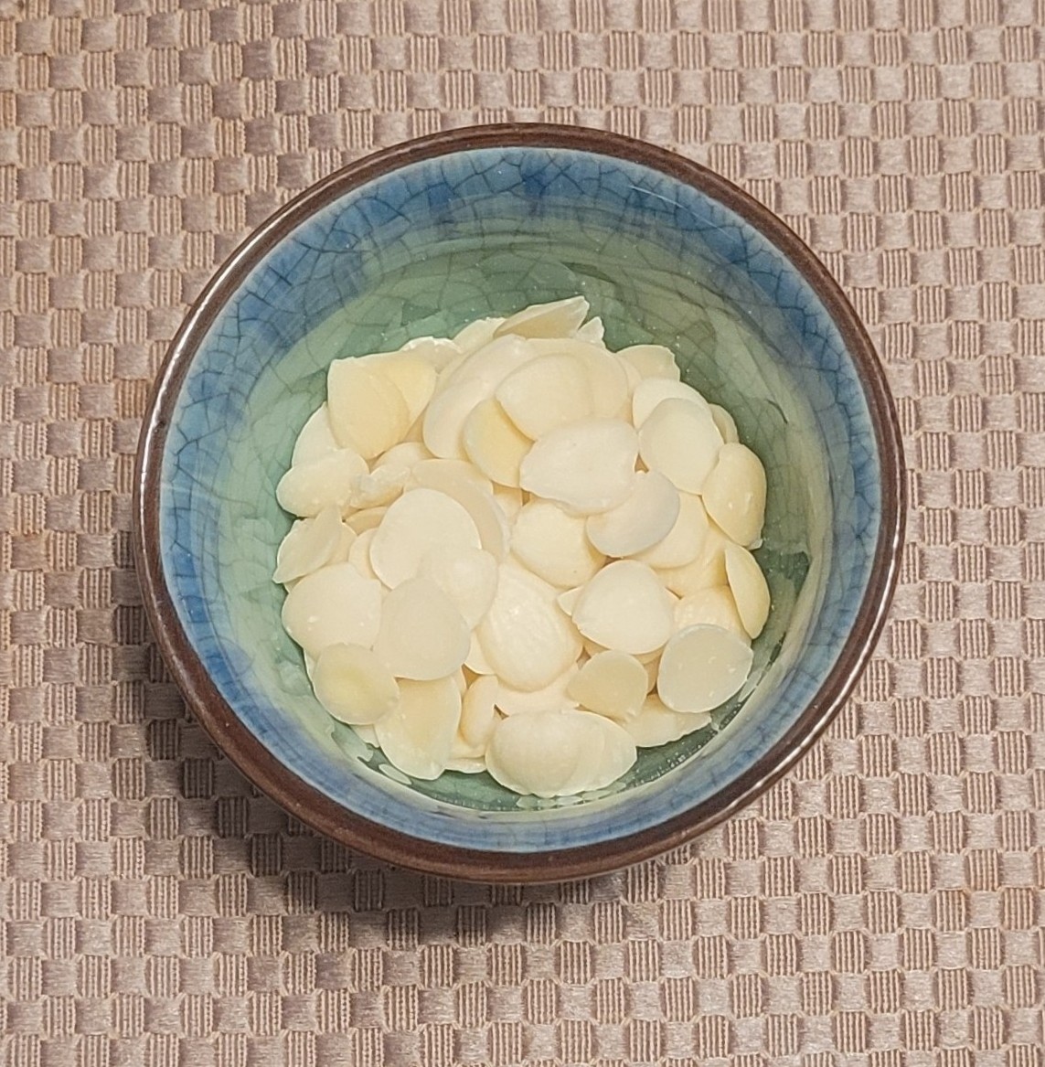 - Rinse and soak the sweet apricot kernels in water for 2–4 hours (or longer should you desire, but for those with a weaker spleen, shorter soaking times are generally better.) This helps soften the kernels for blending and makes them easier to digest.